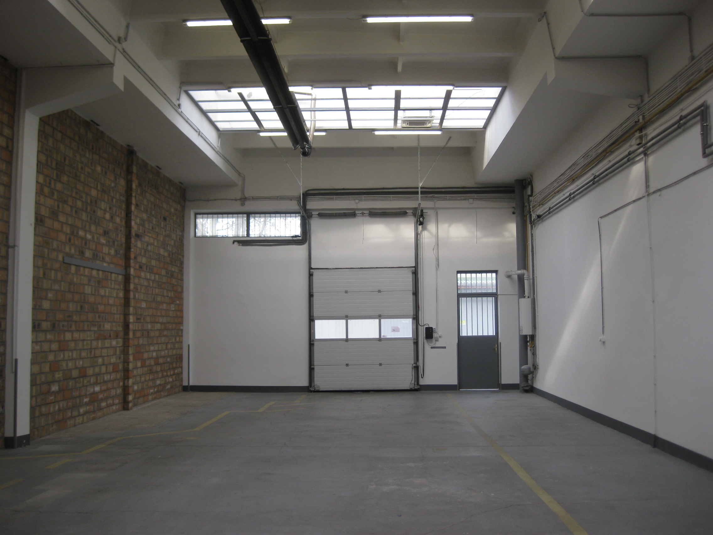 Természetes megvilágítású, nagy belmagasságú fűthető csarnoktér.